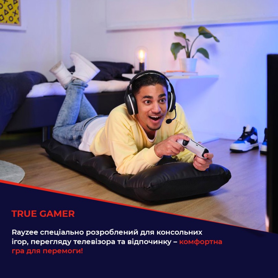 Лінуйтеся з Rayzee! Незалежно від того, граєте ви, відпочиваєте чи навіть дрімаєте, надзвичайно м’яка підкладка цього крісла забезпечує оптимальний комфорт протягом багатьох годин. Щасливе тіло, щасливі ігри.