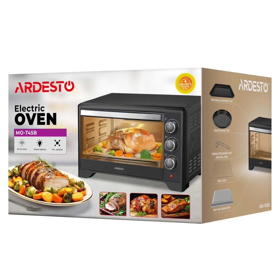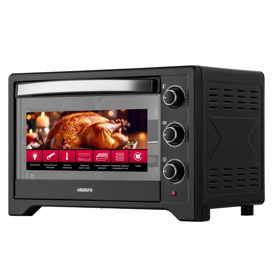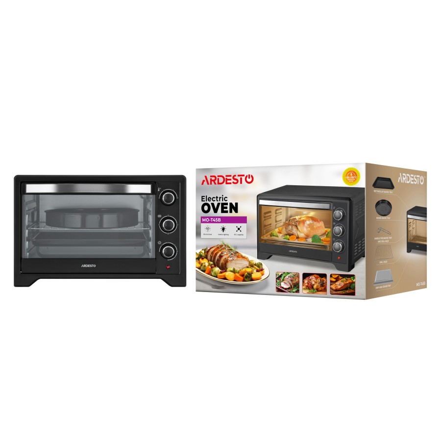 Електрична піч ARDESTO об’ємом 45 л стане надійною помічницею вдома чи на дачі. У ній зручно запікати цілу курку, готувати піцу, випічку або кілька страв одночасно. Містка камера та три рівні для дек забезпечують гнучкість – можна готувати порційно або експериментувати з рецептами.