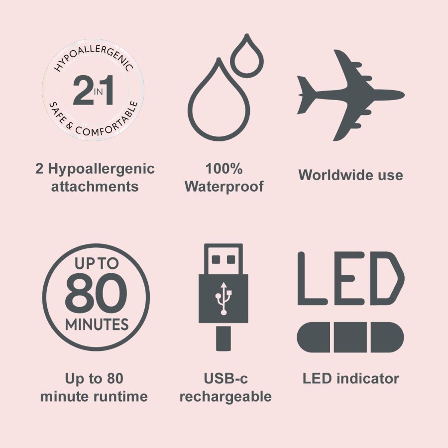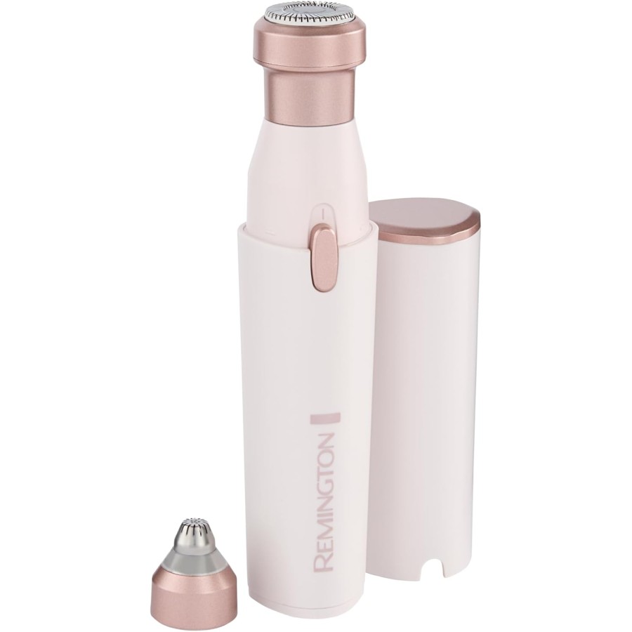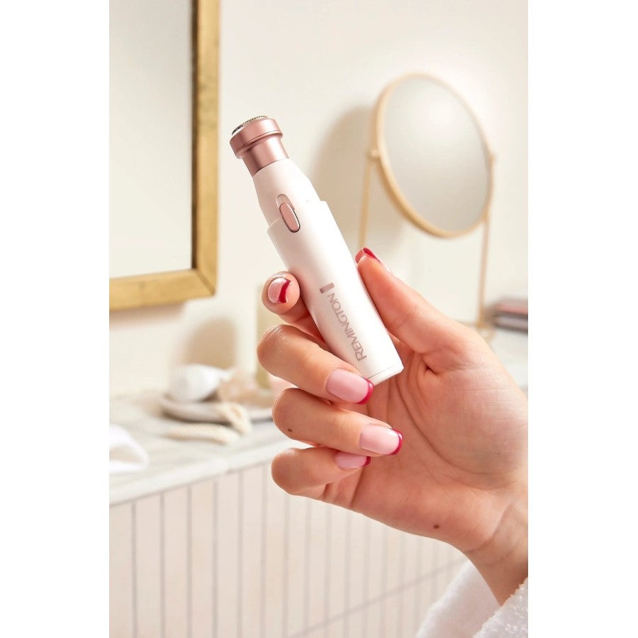 Remington WFS200 – триммер 2в1 з кнопковим керуванням та роторним мотором потужністю 5 Вт для обробки бороди, вусів, брів, носа та вух у побутових умовах. Дві знімні насадки з гіпоалергенними лезами з хірургічної нержавіючої сталі: одна для ніжного гоління обличчя та видалення пушкового волосся, друга з LED-підсвічуванням для точного оформлення брів. Li-Ion акумулятор забезпечує 80 хвилин автономної роботи після 90 хвилин заряджання через USB-C, індикатор відображає рівень заряду, швидке заряджання скорочує час очікування. Повна водонепроникність підтримує очищення під водою та стрижку вологого волосся, захисний ковпачок з відсіком, щіточка для чищення, кабель USB-C, інструкція та гарантійний талон у комплекті. Габарити 13,7x2,7x2,7 см при вазі 0,12 кг у рожевому кольорі створюють стильний дорожній дизайн.