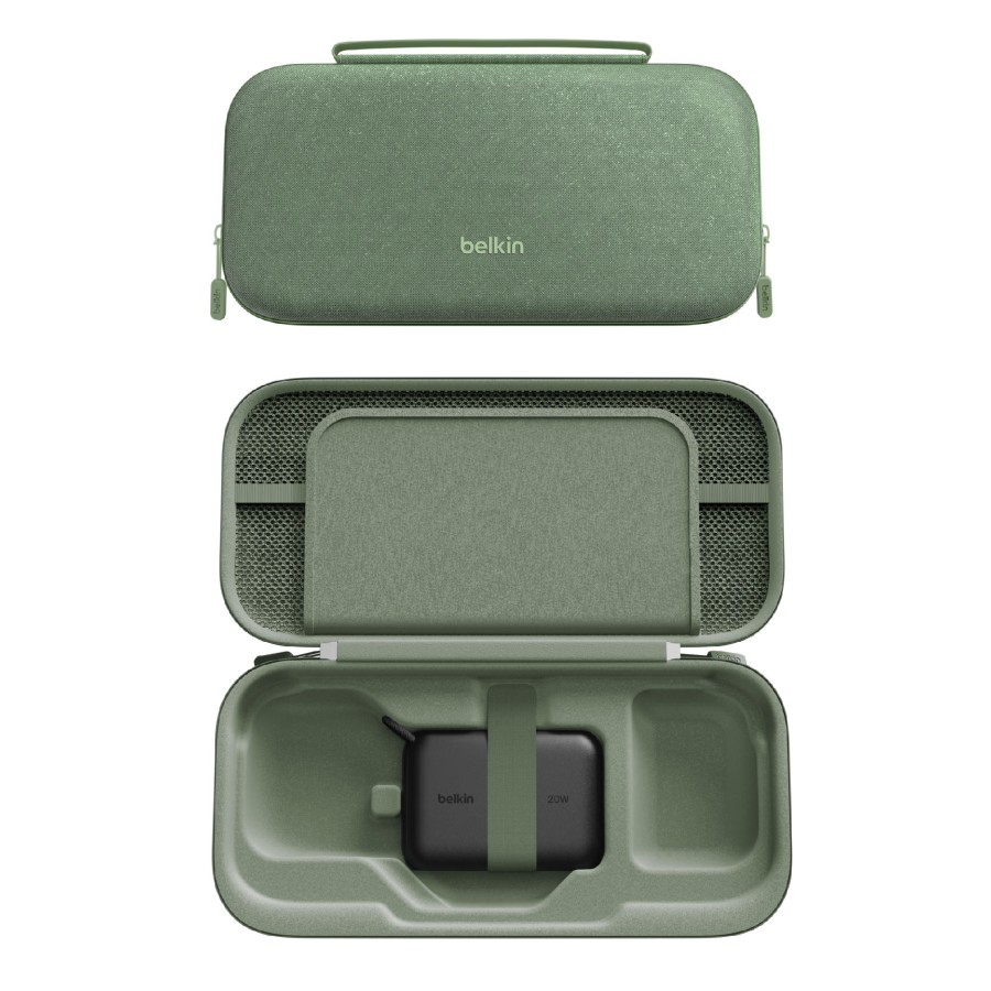 Мобільне живлення без компромісів. Усередині – потужний акумулятор 10 000 мА·год із дисплеєм, який дає змогу відновлювати заряд Nintendo Switch 2 до 1,5 раза швидше. Забезпечено живлення 20 Вт через розніми USB-C та USB-A. Завдяки технології Belkin SmartProtect заряджання безпечне та стабільне, навіть коли гра триває. Спеціальна канавка для підставки дає змогу встановити консоль безпосередньо в кейсі, щоби грати й одночасно заряджати.