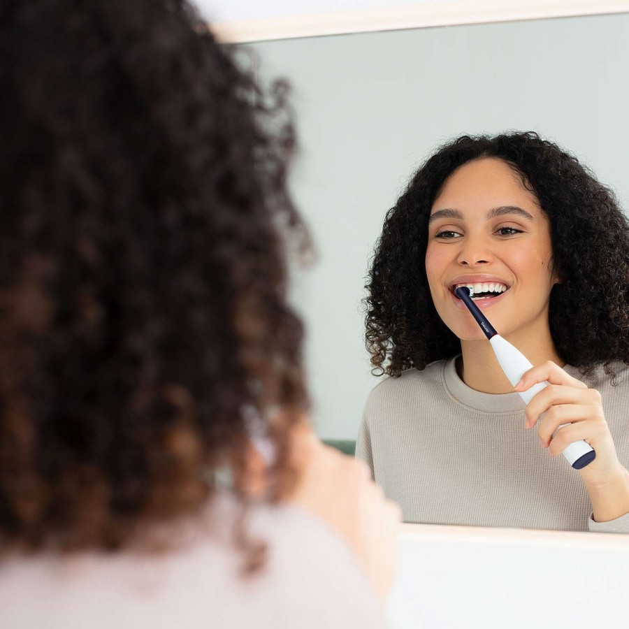 Вбудований таймер на 2 хвилини з інтервалами кожні 30 секунд структурує процес чищення на чотири зони. Короткі паузи нагадують, коли варто змінити ділянку, щоб усі поверхні зубів отримали достатню увагу. Після завершення рекомендованого циклу щітка автоматично вимикається, що допомагає уникнути зайвого навантаження на емаль і економити заряд.