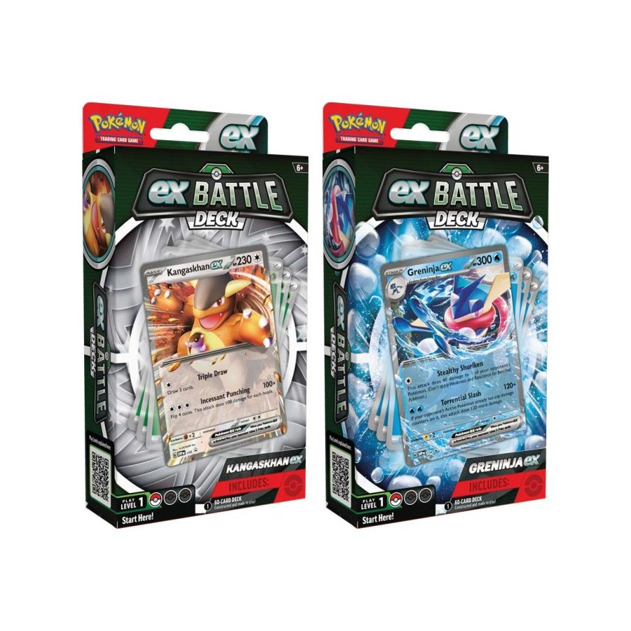 Колекційна карткова гра Pokémon TCG: Greninja/Kangaskhan ex Battle Deck (1 випадково) — чудовий вибір як для новачків, так і для досвідчених гравців. У наборі — одна випадкова готова до гри колоду з 60 карт, яку очолює могутній Покемон ex — Greninja ex або Kangaskhan ex. До складу входять усі необхідні аксесуари, щоб почати гру одразу після розпакування: довідкові картки, правила, ігровий килимок, лічильники шкоди, велика металева монета та інші корисні доповнення. Це чудова нагода швидко зануритися у світ Pokémon TCG та випробувати свої сили у поєдинках!