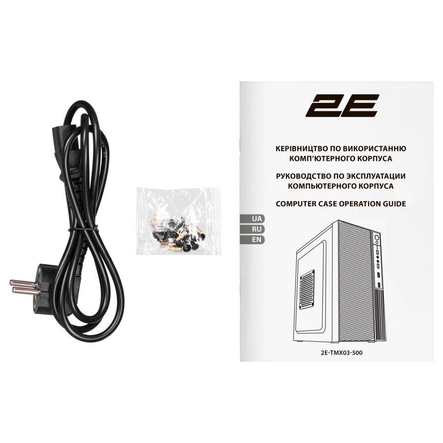 2E TeamX TMX03-500 підходить для збірки компактної домашньої або офісної системи, а також бюджетної робочої станції середнього рівня. Корпус забезпечує можливість монтажу достатньої кількості копій і багаточисельних плат розширення (4 слота розширення), відеоадаптера довжиною до 220 мм. У корпусі передбачено простір для точного розміщення кабелів, можна встановити до 2 вентиляторів, охолодження для процесора висотою не більше 145 мм. В комплекті 1х80 мм вентилятор на задній панелі.