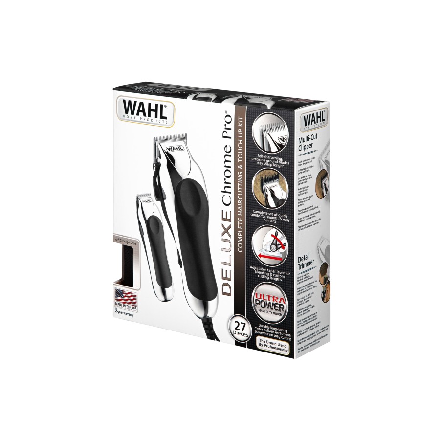 Машинка для стрижки WAHL ChromePro Deluxe, від мережі, вібраційний мотор, насадок-12, ножиці, сталь, сіро-чорний (79524-2716)
