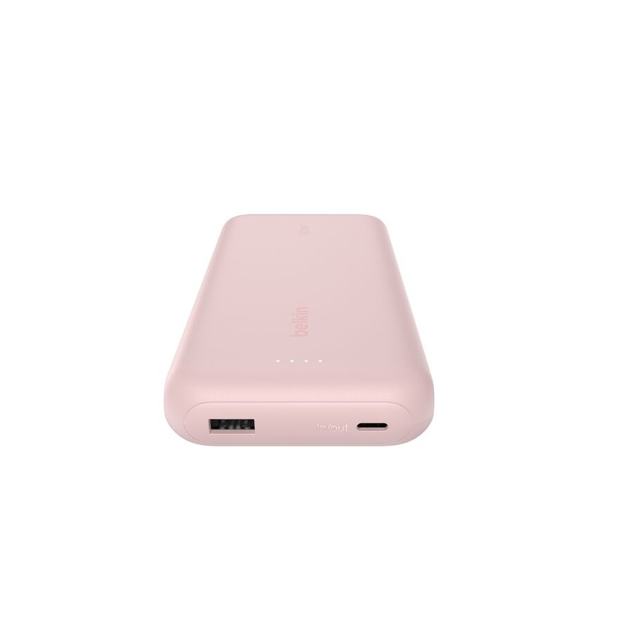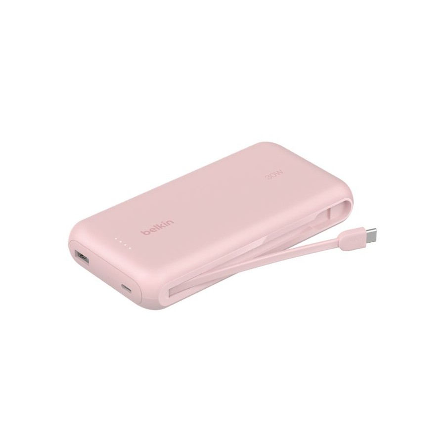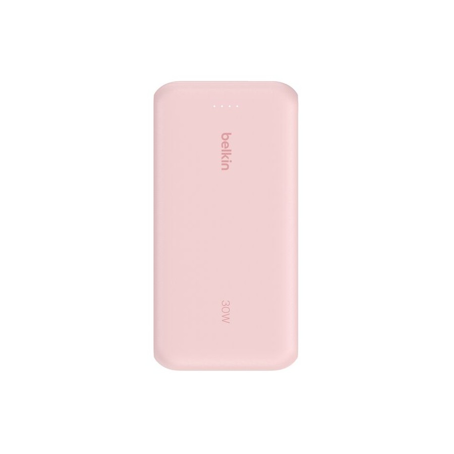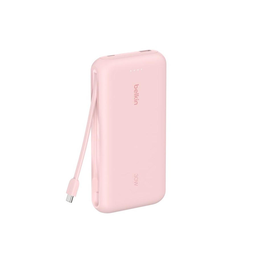 Belkin BoostCharge (BPB024HQPK, рожевий) — це високопродуктивний портативний акумулятор на 20 000 мА·год, оснащений вбудованим кабелем USB-C для швидкої зарядки без додаткових аксесуарів. Підтримує Power Delivery 3.0 (PD) — до 30 Вт на виході, що дозволяє швидко заряджати iPhone, iPad, Samsung, Google Pixel та інші сумісні пристрої.