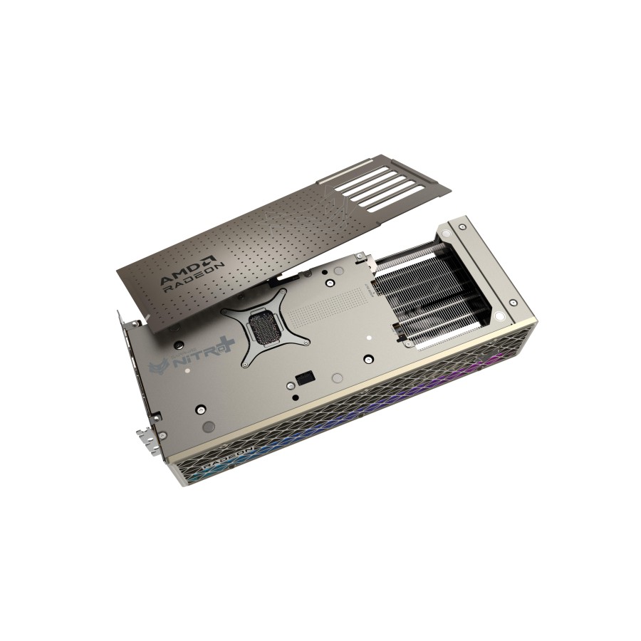 Відеокарта SAPPHIRE Radeon RX 9070 NITRO+ GAMING OC побудована на архітектурі AMD RDNA 4 і розрахована на високі навантаження. Вона оснащена потужною системою охолодження з трьома вентиляторами, радіатором і інтегрованим тепловим модулем для відведення тепла від GPU, пам’яті та VRM. Конструкція з холоднокатаної сталі та підсилювальна пластина підвищують жорсткість і захищають компоненти. Магнітна задня панель MagniPlate поєднує зручність монтажу та додаткове тепловідведення. ARGB-підсвічування дозволяє змінювати зовнішній вигляд відеокарти відповідно до стилю системи.