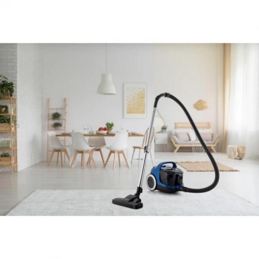 Контейнер на 2,2 л легко очищується після завершення роботи. Телескопічна трубка регулюється за довжиною, що зручно для користувачів різного зросту. Гнучкий шланг допомагає працювати у вузьких місцях. Поворотна ручка полегшує транспортування та керування пилососом. Гумові колеса зменшують ризик появи подряпин на чутливих підлогових покриттях. Радіус дії 7 м підходить для невеликих і середніх приміщень.