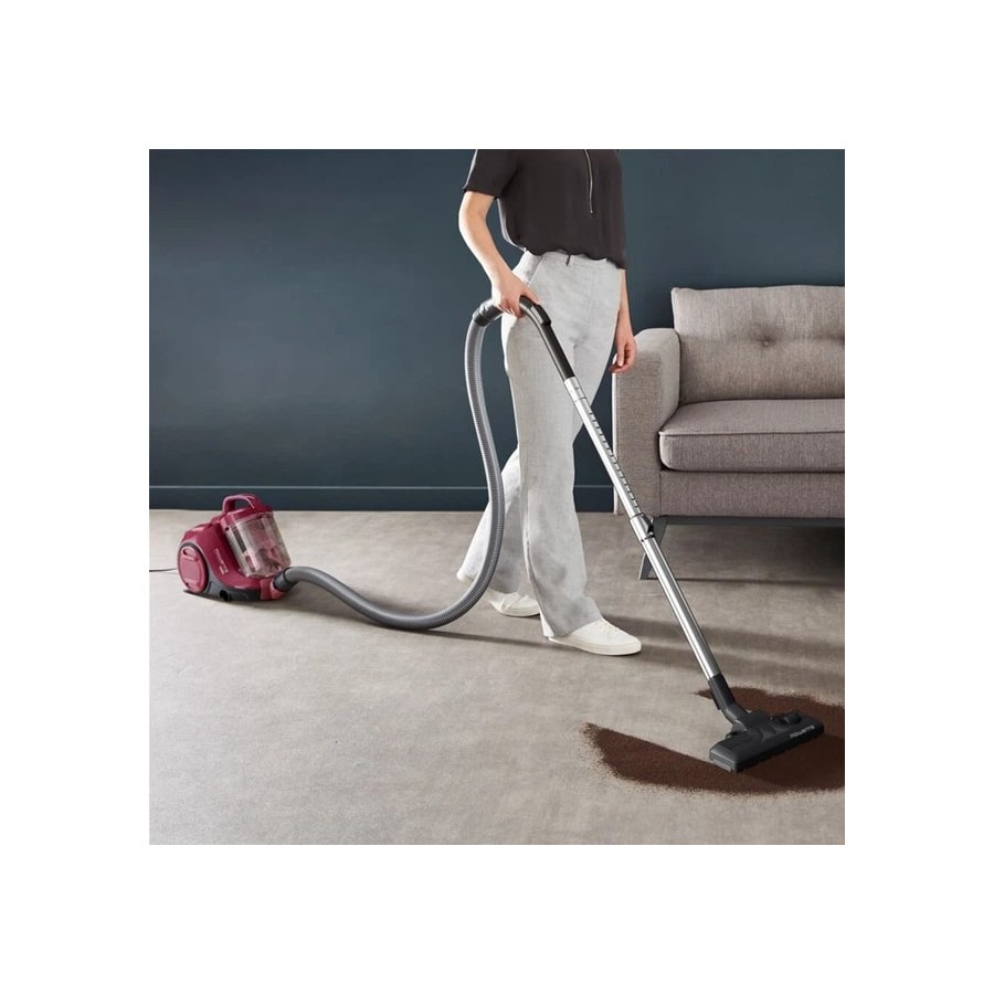 Rowenta Compact Power Cyclonic RO2910EA – це контейнерний пилосос, розроблений для комфортного та продуктивного прибирання в житлових приміщеннях. Завдяки циклонній технології він підтримує стабільну силу всмоктування та ефективно відокремлює пил від повітря. Прогумовані колеса забезпечують плавне пересування, а сталева телескопічна трубка дає змогу налаштувати довжину для зручності користувача. Контейнер на 1.2 л легко знімається та очищується, а компактний корпус не займає багато місця.