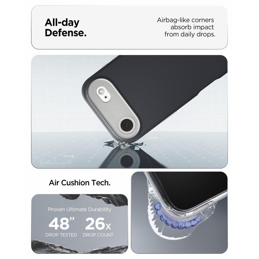 Конструкція чохла складається з міцного полікарбонату (PC) та еластичного TPU, які формують надійний захисний корпус. Фірмова технологія Air Cushion у кутах ефективно поглинає удари, захищаючи iPhone 17 Air від падінь.