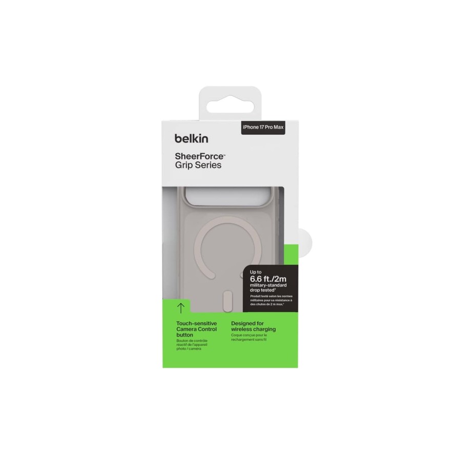 Belkin Grip Series (MSA036HQSA, колір Sand) — це преміальний захисний чохол для iPhone 17 Pro Max, який поєднує теплий пісочний відтінок із високою функціональністю та екологічністю. Корпус виготовлено з термопластичного поліуретану (TPU) — еластичного, зносостійкого матеріалу, що частково складається з переробленого пластику. Чохол тонкий і легкий, не збільшує габарити смартфона, але забезпечує захист від падінь із висоти до 2 метрів (тестовано за стандартами Belkin).