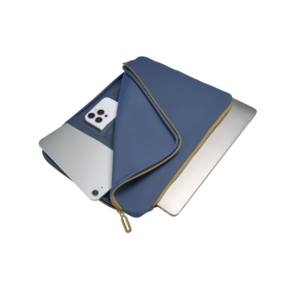 Tucano Doppio 12"/13" поєднує комфорт у користуванні та надійність захисту. Основне відділення оснащене протиковзкою смужкою для стабільного розташування ноутбука чи планшета, а друге має сітчасту кишеню для зберігання зарядного пристрою, кабелів або документів. Зовнішній шар із неопрену товщиною 4 мм забезпечує амортизацію при ударах. Матеріал виготовлено з використанням переробленого пластику, що підтримує ідею екологічного виробництва. Внутрішні кутові клапани посилюють захист корпусу пристрою під час транспортування.