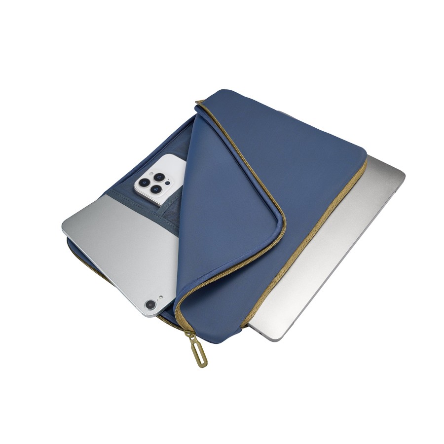 Tucano Doppio 13"/14" — це універсальний чохол для ноутбуків і планшетів до 14 дюймів, створений для щоденного використання. Його конструкція має два окремих відділення: основне з протиковзкою смужкою для стабільного утримання пристрою та додаткове з сітчастою кишенею для аксесуарів. Неопрен товщиною 4 мм пом’якшує удари та запобігає подряпинам. Використання матеріалу з часткою переробленого пластику підтримує екологічний баланс. Внутрішні кутові клапани зміцнюють конструкцію, зменшуючи ризик пошкоджень у кутах.