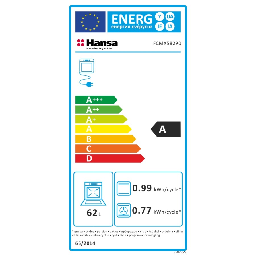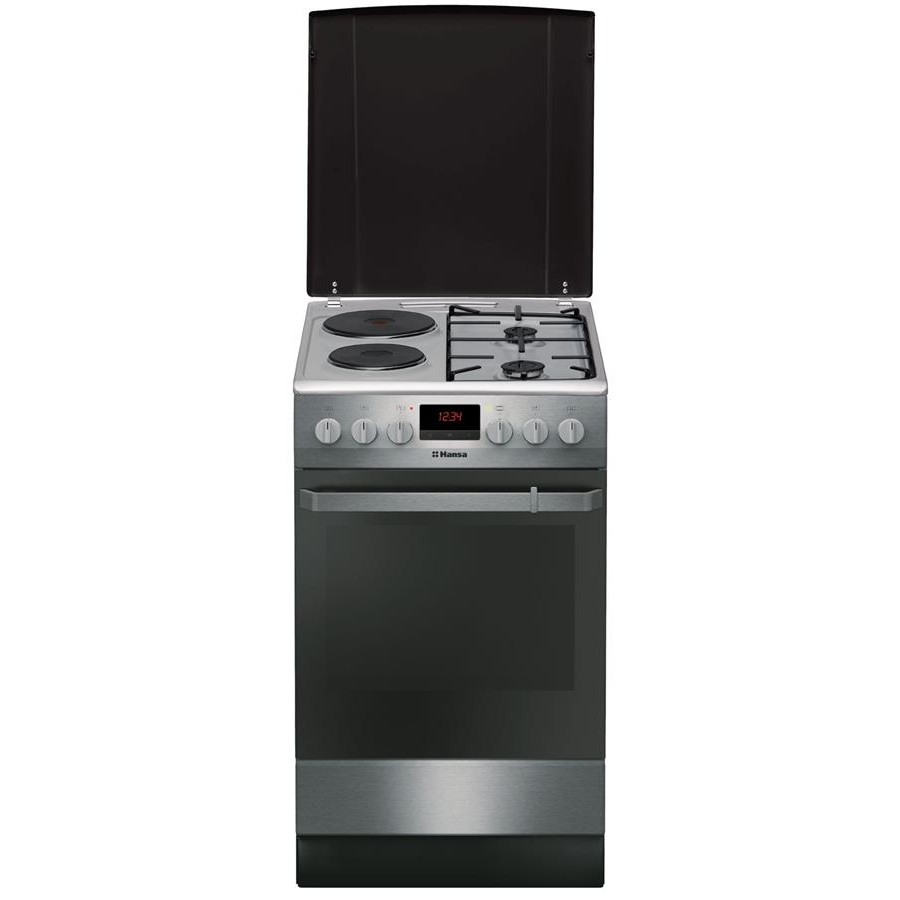 Hansa FCMX58290 – це комбінована плита 2+2, що поєднує газові та електричні конфорки для універсального приготування страв. Духова шафа об'ємом 62 літри підтримує 8 режимів нагріву, включно з грилем, конвекцією, нижнім нагрівом та розморожуванням. LED-дисплей допомагає контролювати час роботи, а функція швидкого розігріву дозволяє досягти потрібної температури за кілька хвилин. Емаль EasyClean та парове очищення забезпечують простий догляд за внутрішньою камерою. Газ-контроль, трискляні дверцята та емальована кришка підвищують безпеку й комфорт користування.