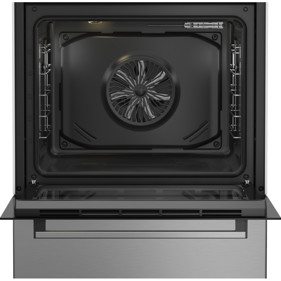 Плита Beko поєднує сучасну склокерамічну варильну поверхню та багатофункціональну духову шафу. На поверхні розташовано чотири електричні зони нагріву з різною конфігурацією: стандартні круглі зони, розширювана подвійна Duo Zone та продовгувата овальна зона, що зручна для гусятниць або посуду нетипової форми. Індикатори залишкового тепла допомагають контролювати температуру після вимкнення конфорок.