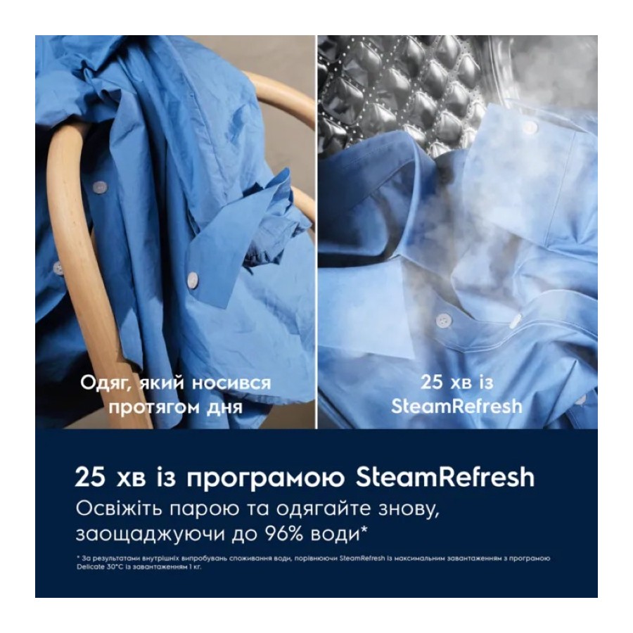 - SteamRefresh – відновлення свіжості одягу за 25 хвилин із мінімальним споживанням води