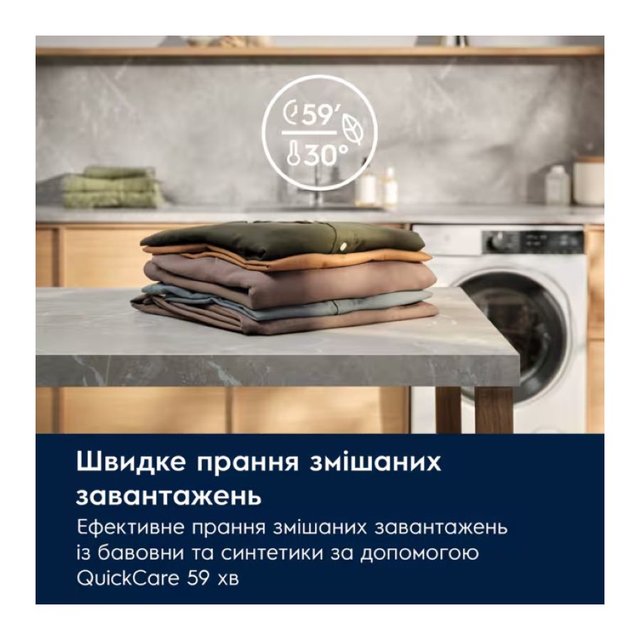 - QuickCare 59 – повноцінне прання змішаного завантаження за одну годину при 30 °C