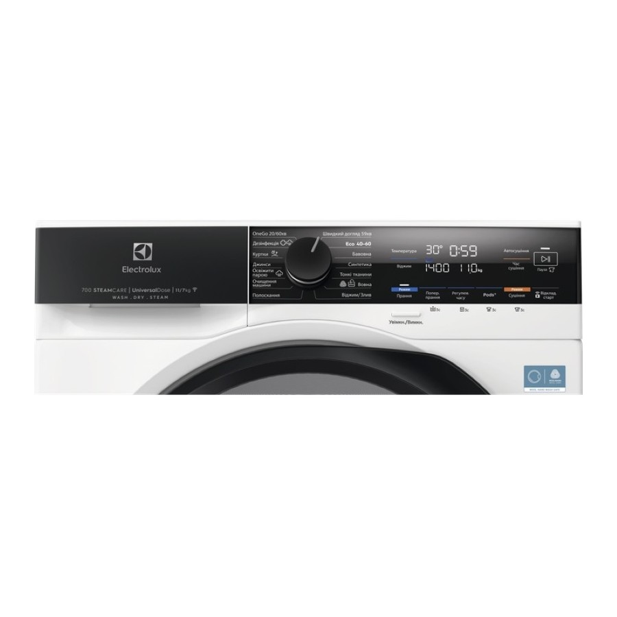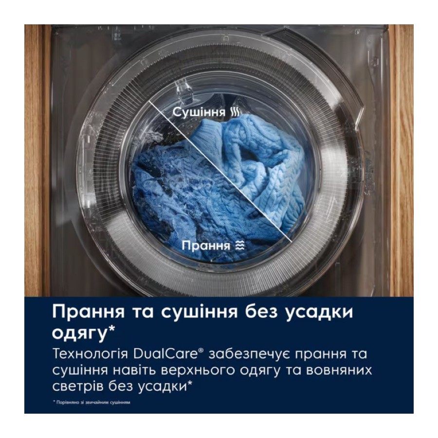- DualCare® — автоматичне налаштування параметрів прання та сушіння за типом тканини та завантаженням