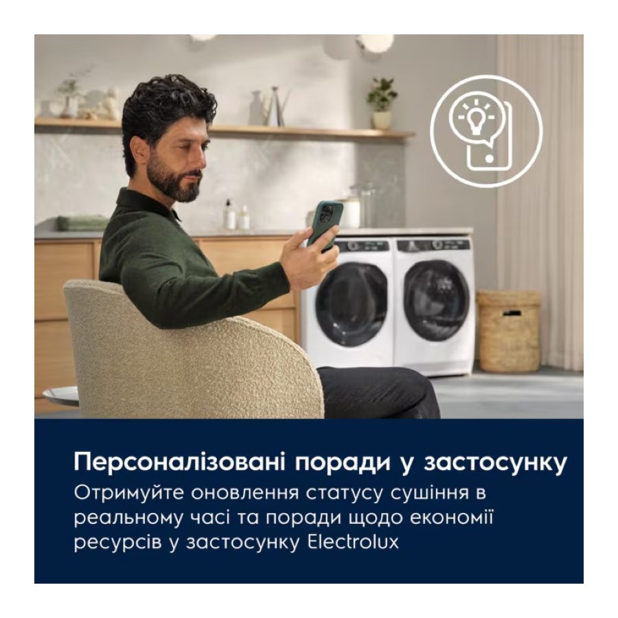 Функція Connected дає можливість дистанційного керування через застосунок Electrolux: користувач бачить статус програм, отримує рекомендації щодо вибору режимів та раціонального використання ресурсів. Це допомагає краще планувати завантаження й адаптувати налаштування під реальні потреби.