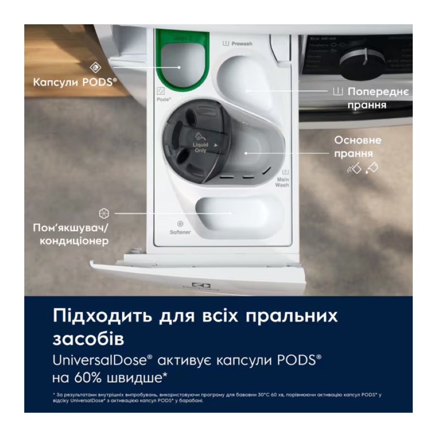 - UniversalDose® — контейнер для всіх типів мийних засобів із прискореною активацією капсул PODS®