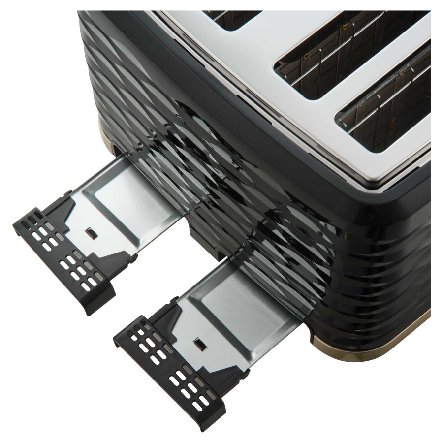Три основні функції: розморожування замороженого хліба, підігрів без додаткового підсмажування та миттєва зупинка. Функція High Lift піднімає навіть маленькі шматочки для безпечного вилучення. Автоматичне центрування гарантує рівномірне підсмажування товстих і тонких скибок. Зручний висувний піддон для крихт, місце для намотування кабелю та противідкатні ніжки.