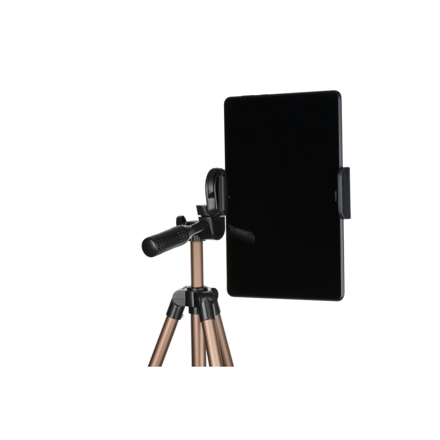 Штатив універсальний для смартфонів і планшетів. Всі смартфони та планшети можуть бути встановлені на штатив. Гвинтовий універсальний тримач. Гнучкий захват для смартфона шириною від 5,5 до 8,2 см і планшета шириною від 11,2 до 18,5 см (в горизонтальному розташуванні). Компактна конструкція. Для Селфі і відео, ідеально підходить для відео-щоденників, блогів і подорожей. Пружина тримача і виїмка на поверхні - забезпечують надійну установку смартфона або планшета, а гумове напилення на тримачі захищає корпус від подряпин.
