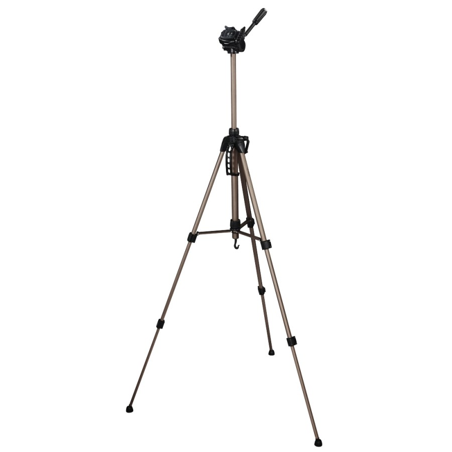 Штатив для фотокамери зі стійким розміщенням на нерівних поверхнях, підходить для фото і для відеокамер. Рівень горизонталі інтегрований в верхню площадку штатива. Регулювання висоти центральної площадки. Скоби і гумові ніжки для надійного і сталого розміщення. Завдяки функціональним швидкодіючим замкам для алюмінієвих опорних треніг - штатив можна легко і швидко закріпити на необхідній висоті або в потрібному положенні.
