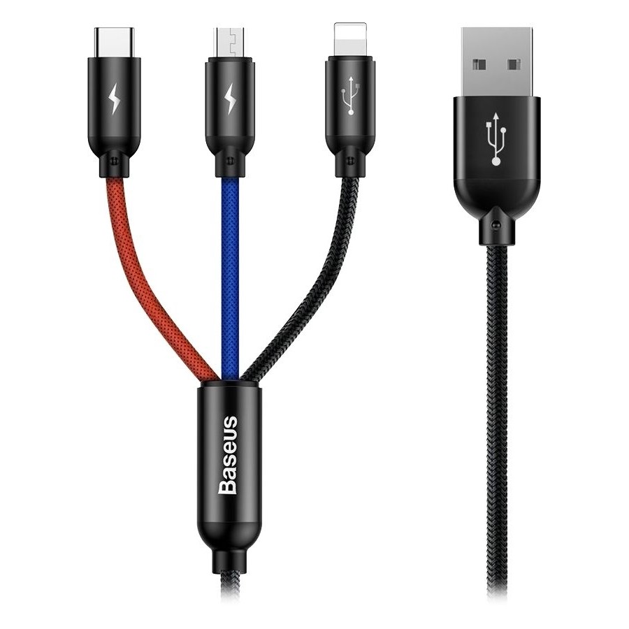 Baseus Three Primary Colors 3-in-1 - кабель для заряджання та передачі даних з мультиінтерфейсом.