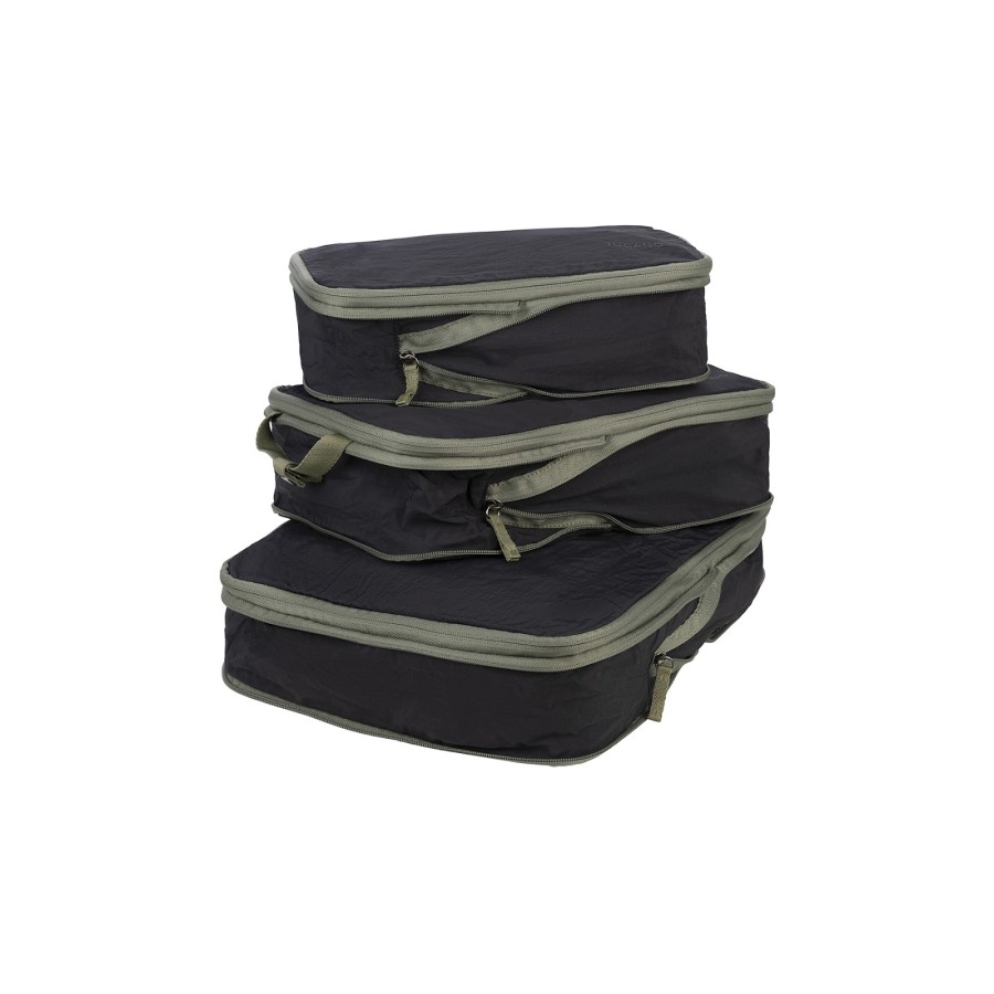 Комплект містить три органайзери розмірів L, M та S для системного пакування. Міцна та легка конструкція розрахована на багаторазове використання. Усередині передбачений м’який роздільник для впорядкування вмісту. Чохол розміру L призначений для штанів і сорочок. Чохол розміру M використовується для нижньої білизни та компактного одягу. Чохол розміру S зручний для косметики та дрібних предметів. Матеріал зберігає форму під час транспортування. Набір спрощує сортування речей у дорозі.