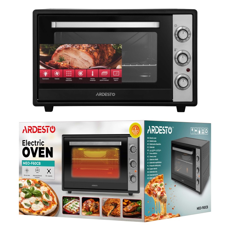 Піч електрична ARDESTO, 60л, 2000Вт, механіч., конвенція, подвійне скло, чорний (MEO-F60CB)