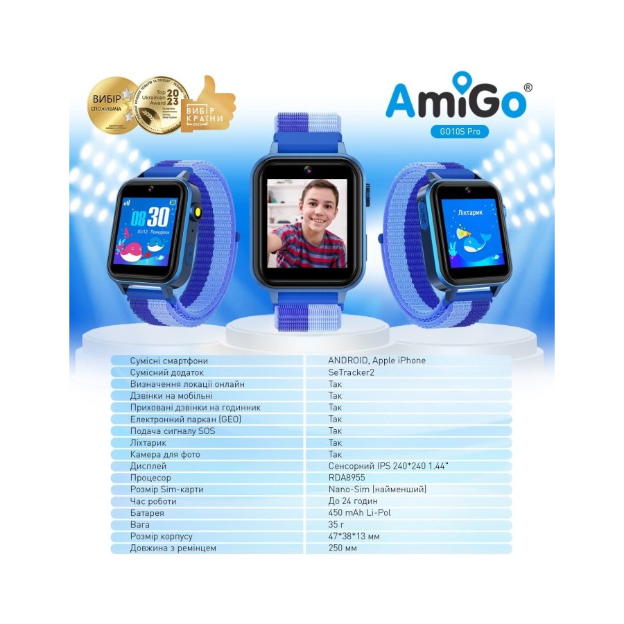 Купити Смарт-годинник для дітей AmiGo GO10S Pro WIFI AMG-GO10S-BL Синій Ви можете, оформивши замовлення у нас на сайті, а також за телефоном гарячої лінії.