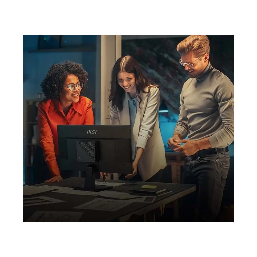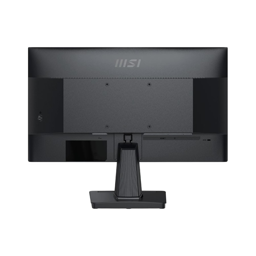 Монітор виконаний у чорному кольорі з мінімалістичним дизайном, що підходить для офісних і домашніх інтер’єрів. Компактна конструкція оптимізує робочий простір. Комплектація включає монітор, підставку, кабель живлення, інструкцію. Гарантія — 24 місяці. Виробництво — Китай, бренд — MSI (Тайвань).