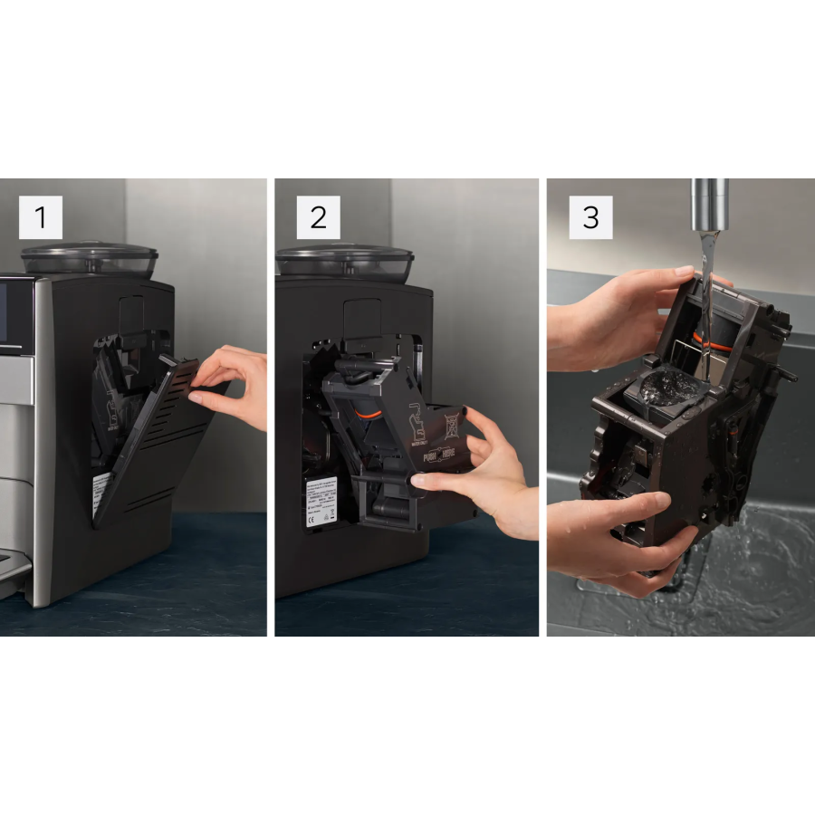 Для гігієнічного очищення заварювальний блок легко зняти та промити під проточною водою. Це забезпечує стабільний смак і продовжує термін експлуатації. Таким чином, ви можете насолоджуватись чистим смаком та ароматом найкращого кавового напою.
