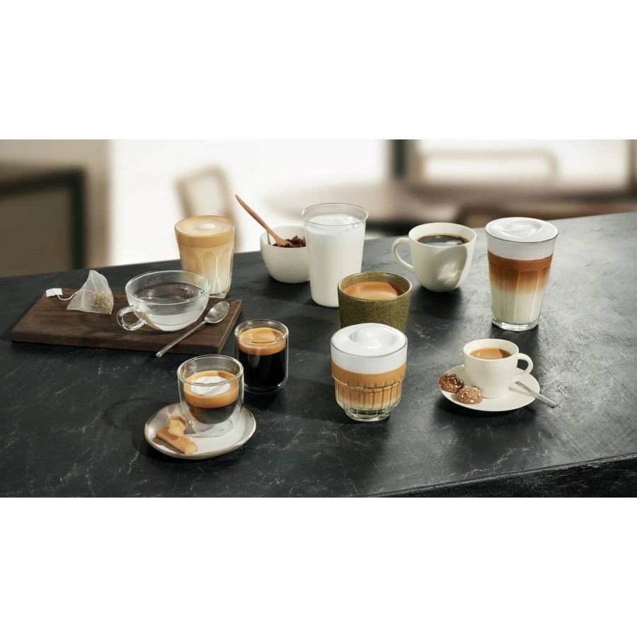Будь-то капучино, лате-мак'ято або еспресо – завдяки повністю автоматичним кавомашинам Siemens ви отримуєте довершений смак кави одним натисканням кнопки. Система миттєво приготує напої з кави та молока — саме так, як вам подобається.
