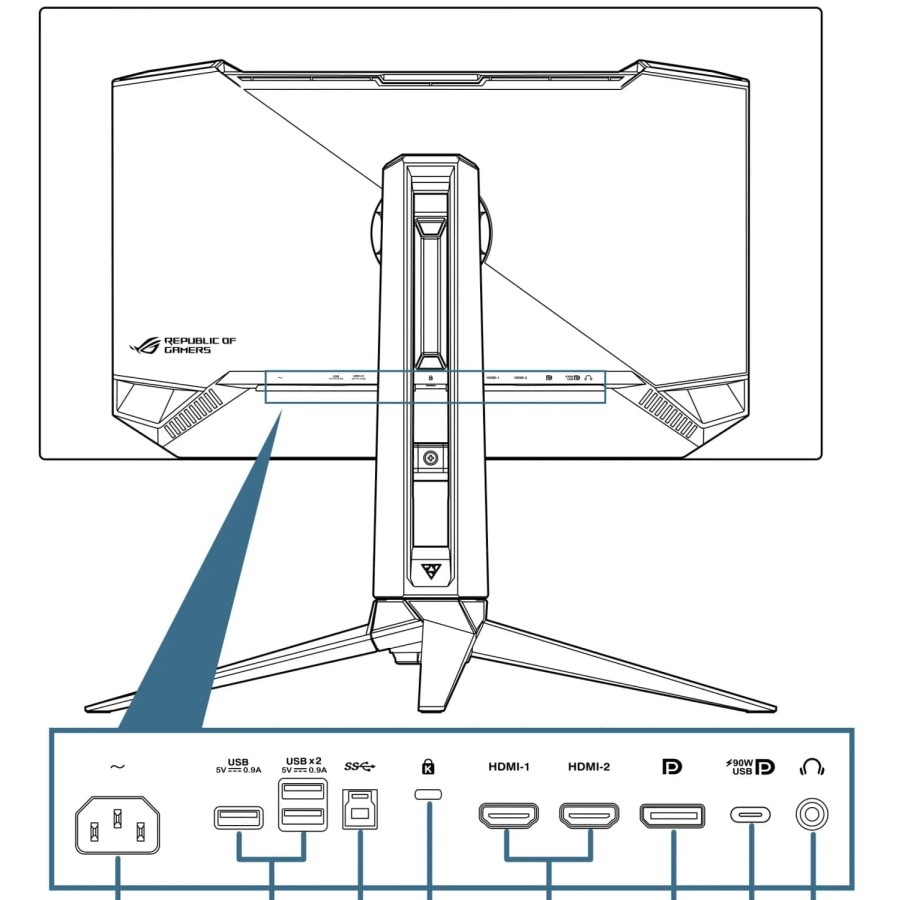 - Входи: 2x HDMI 2.1, 1x DisplayPort 2.1a (UHBR20, 80 Гбіт/с), 1x USB-C (DP Alt Mode)