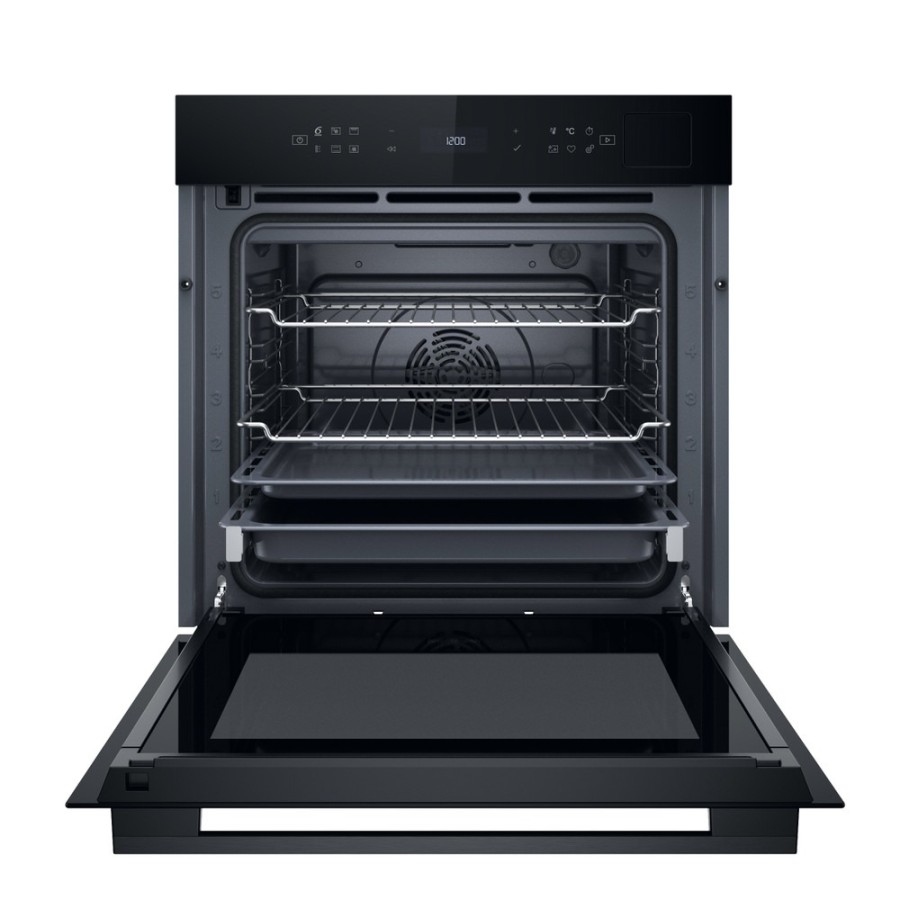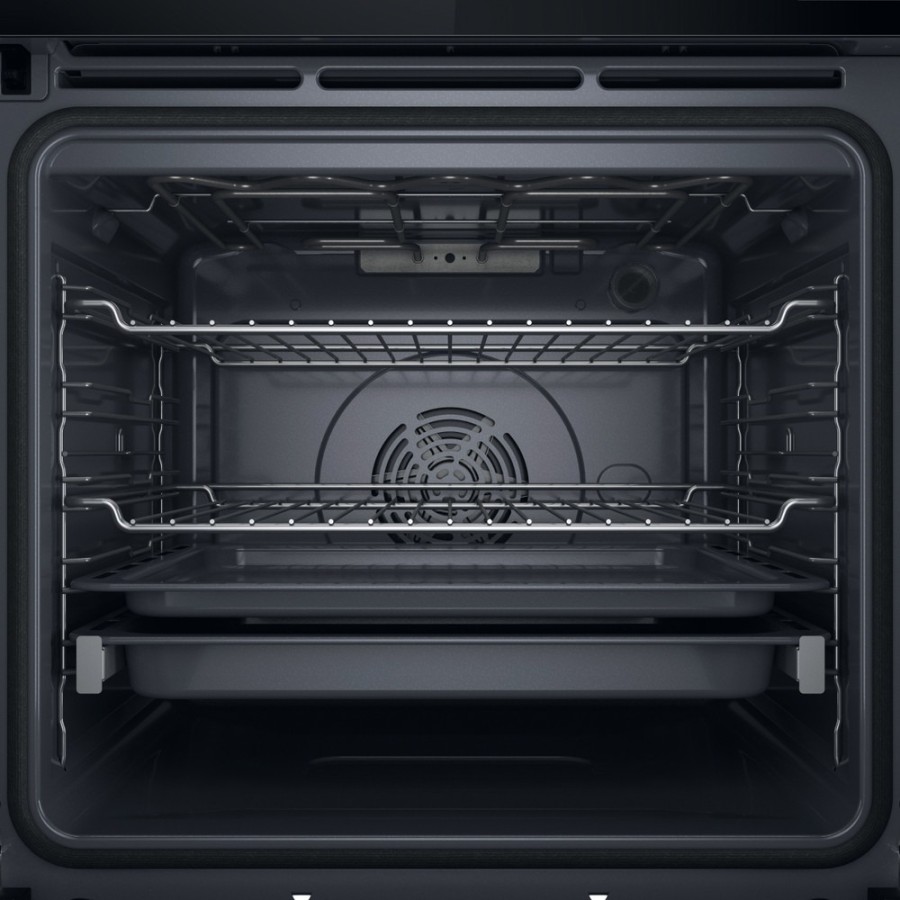 Модель оснащена електронною сенсорною системою керування та камерою на 73 літри, що підходить для приготування великих порцій. П’ять рівнів напрямних дозволяють організувати простір для різних страв одночасно. Конвекція сприяє рівномірному розподілу тепла, а піролітичне очищення FlexiClean перетворює забруднення на попіл без ручного чищення. Автоматичні програми 6th SENSE адаптують параметри готування під тип страви. Телескопічні напрямні на першому рівні підвищують зручність користування деком, а функції безпеки та таймер підтримують контроль процесу.