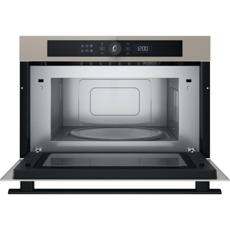 Об’єм камери становить 31 л, що зручно для сімейного використання. Вихідна потужність мікрохвиль досягає 1000 Вт із семи рівнями регулювання. Кварцовий гриль працює з потужністю 800 Вт для рівномірного запікання. Передбачено режими мікрохвиль, гриля та їх поєднання. Автоматичні програми охоплюють популярні страви, зокрема м’ясо, рибу, овочі та піцу. Функція Crisp формує апетитну текстуру готових страв. Сенсорні елементи та поворотний перемикач спрощують навігацію меню. Таймер допомагає контролювати процес приготування. Блокування від дітей підвищує безпеку експлуатації.