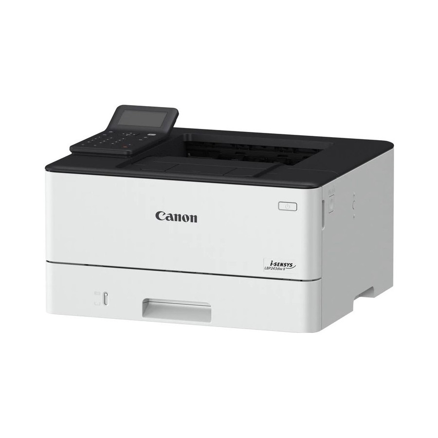 Canon i-SENSYS LBP243dw II — компактний чорно-білий лазерний принтер А4, оновлена модель 2025 року для малого бізнесу, гібридної роботи та домашнього офісу. Швидкість друку до 36 сторінок на хвилину (A4), час виходу першої сторінки ~5 секунд, автоматичний двосторонній друк (duplex) економить папір. Роздільна здатність до 1200×1200 dpi забезпечує чіткий текст і графіку. Підтримує мобільний друк через Canon PRINT Business, Apple AirPrint, Mopria, Wi-Fi Direct (без роутера), а також захищений друк (Secure Print) з PIN-кодом на панелі.