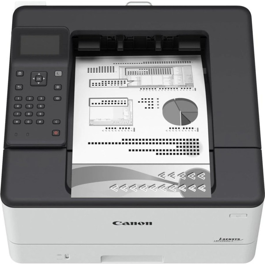 Canon i-SENSYS LBP246dw II — компактний та надійний чорно-білий лазерний принтер А4, спеціально розроблений для малого бізнесу, гібридної роботи та домашнього офісу. Швидкість друку до 42 сторінок на хвилину (перша сторінка за ~5 секунд), автоматичний двосторонній друк (duplex) економить папір, роздільна здатність до 1200×1200 dpi забезпечує чіткий текст і графіку. Підтримує мобільний друк через Canon PRINT Business, Apple AirPrint, Mopria, Wi-Fi Direct (без роутера), а також захищений друк (Secure Print) з PIN-кодом на панелі.