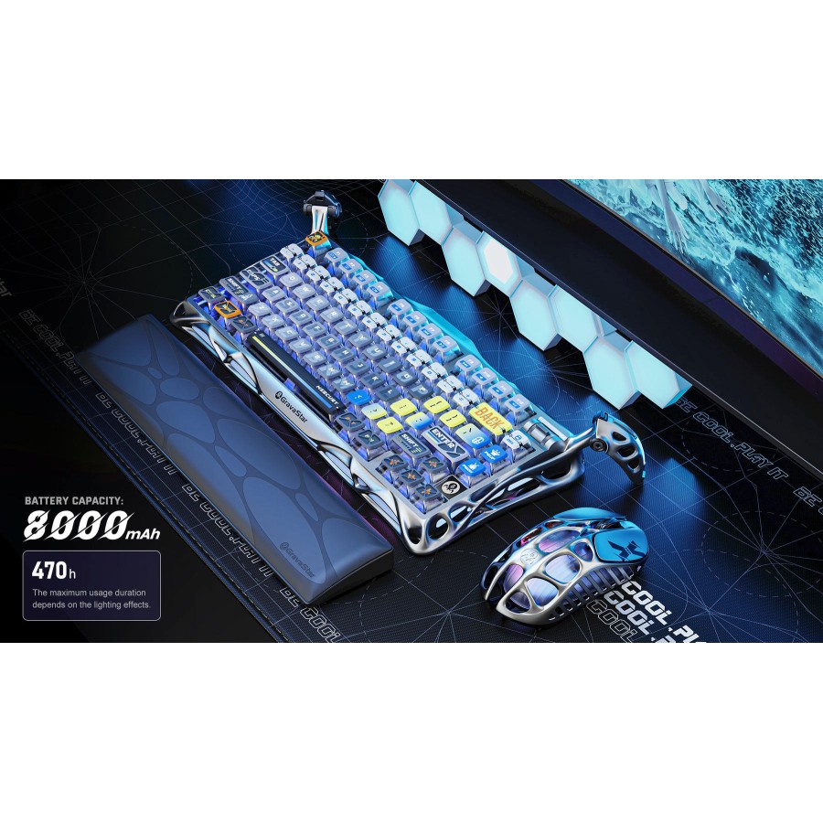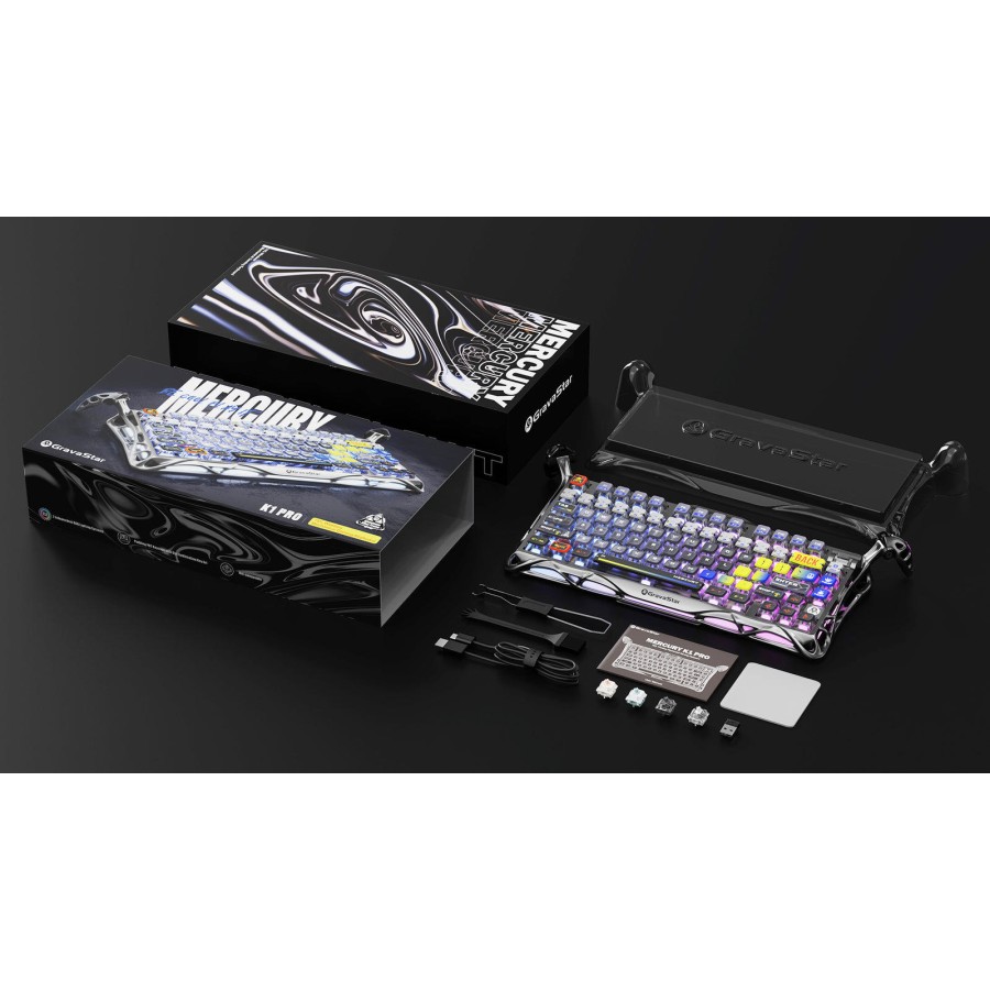 GravaStar Mercury K1 Pro Interstellar Silver вирізняється структурною міцністю алюмінієвого сплаву й витонченим скелетним дизайном, що стабілізує кожне натискання. Два регульовані стабілізатори та продумана прокладка з 5-шаровою пінною системою забезпечують збалансоване звучання і відчуття ходу клавіш. Подвійна незалежна RGB-система пропонує широкі можливості персоналізації з 16,8 мільйонами кольорів і настроюваними ефектами. Потужна батарея 8000 мА·год гарантує тривалу автономну експлуатацію в мобільних сценаріях.