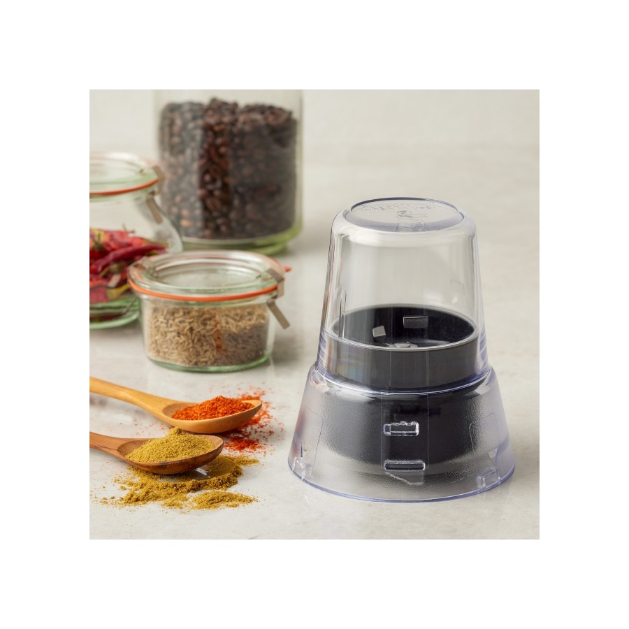 Легкий сухий подрібнювач стане в нагоді, коли потрібно подрібнити цілі спеції в порошок. Портативний подрібнювач переробляє до 50 г сухих інгредієнтів за раз.