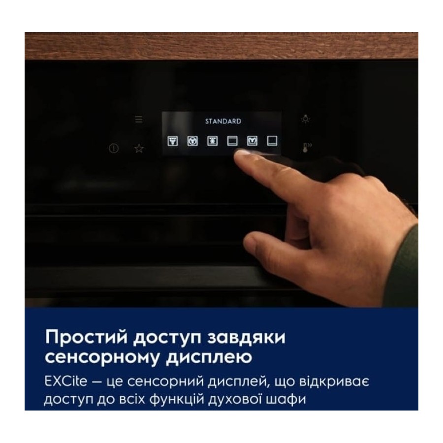 Сенсорний TFT-дисплей EXCite забезпечує швидкий доступ до функцій духової шафи та відображає поточні налаштування під час роботи. Функція Assisted Cooking пропонує рекомендовані параметри температури й часу для різних типів страв, з можливістю ручного налаштування.