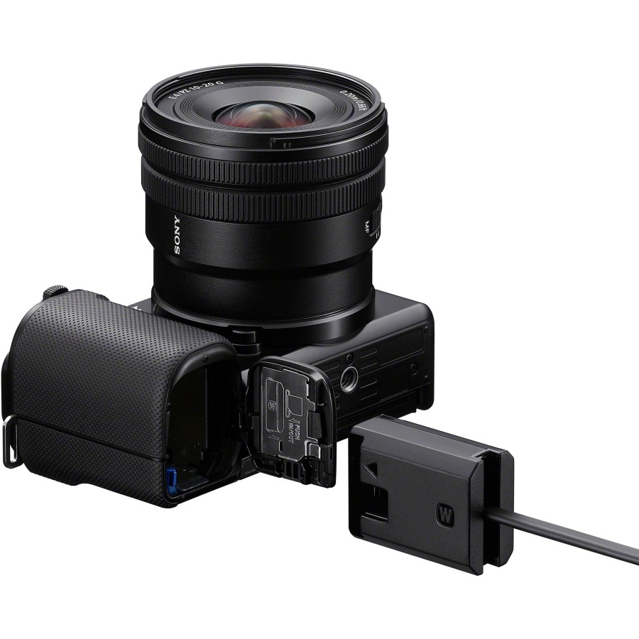 Зарядний пристрій Sony DC-C1 призначений для безперервного живлення цифрових камер через інтерфейс USB Power Delivery. Він сумісний з камерами, що використовують акумулятори NP-FZ100 або NP-FW50, та підходить для тривалих зйомок. Для роботи потрібне джерело живлення USB PD потужністю 65 Вт або більше та відповідний кабель. Конструкція передбачає стопорний гвинт для фіксації USB-кабелю. Світлодіодний індикатор інформує про стан подачі живлення та параметри підключення.