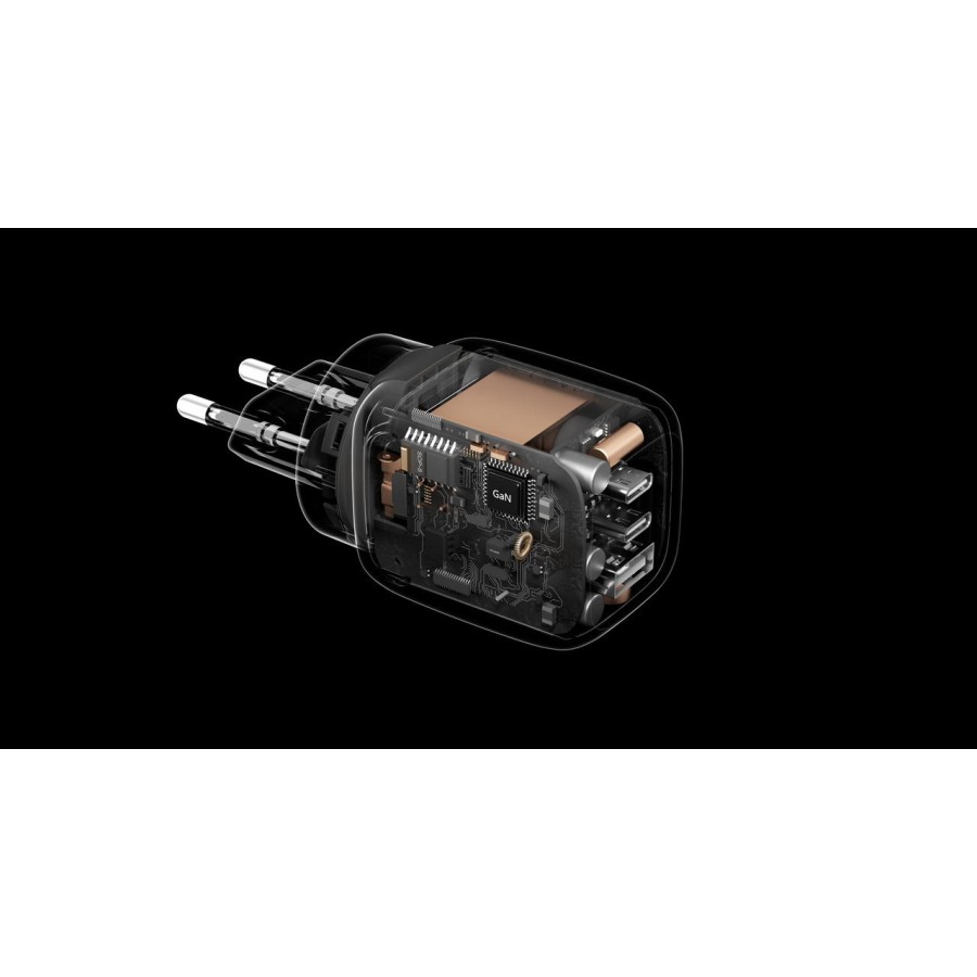 GaN-технологія дозволяє компактно розмістити високопотужну електроніку, зменшуючи нагрівання та втрати енергії. Зарядний пристрій з трьома портами забезпечує гнучкість у використанні: два USB-C порти та один USB-A дозволяють одночасно заряджати смартфони, планшети, ноутбуки, навушники та смартгодинники. Компактний і легкий корпус із складаними контактами полегшує перенесення та подорожі. Сумісність із протоколами PD 3.1 і PPS гарантує оптимальну подачу потужності під кожний пристрій. Надійні захисти від перенапруги, короткого замикання, перегріву та електростатичного розряду забезпечують безпеку під час використання. Можливість адаптації вилок для різних стандартів розеток робить пристрій універсальним у подорожах.
