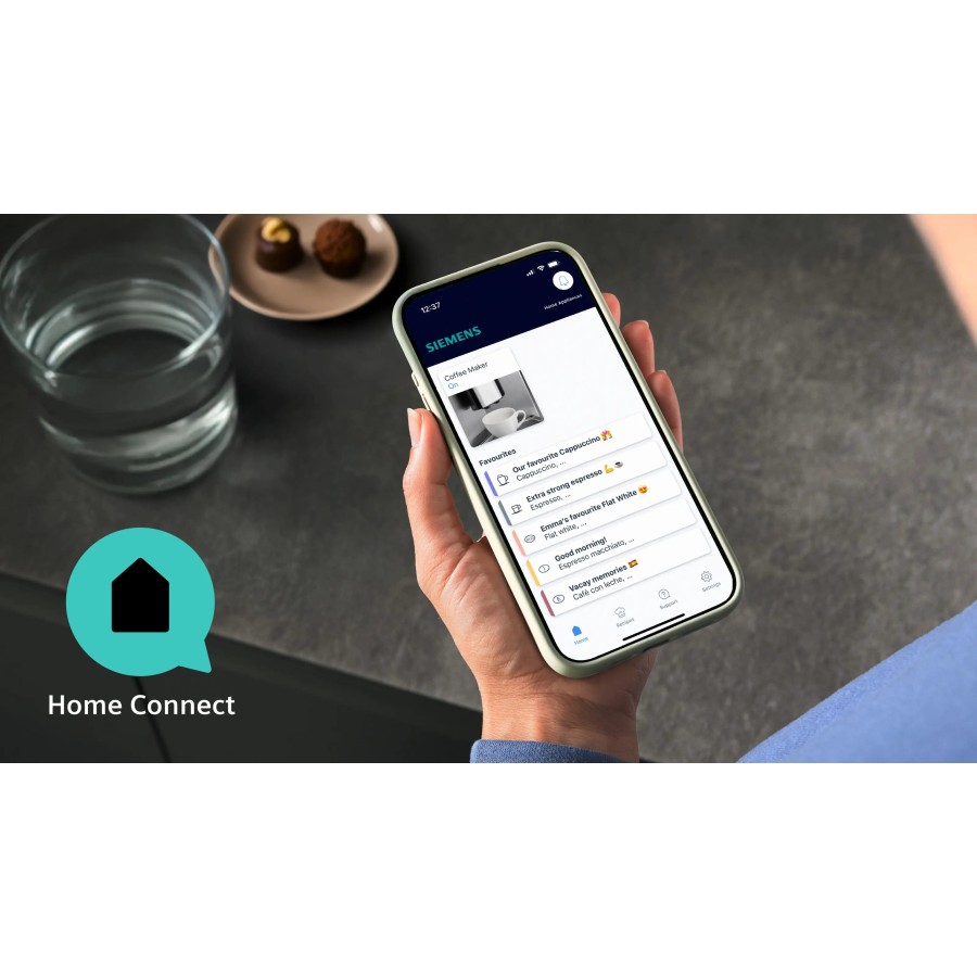 Кавомашина підтримує приготування двох напоїв одночасно за допомогою функції OneTouch DoubleCup. Підключення до Wi-Fi та додаток Home Connect забезпечують дистанційне керування, використання coffeePlaylist і запуск приготування напоїв зі смартфона.