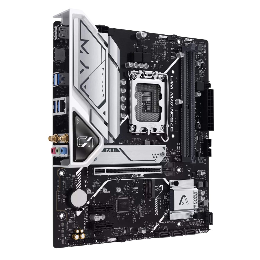 ASUS B760M-AYW WIFI-SI розрахована на процесори Intel Core 12-го, 13-го та 14-го поколінь і поєднує сучасну елементну базу з продуманою архітектурою. Два слоти DDR5 з двоканальним режимом роботи забезпечують високий потенціал пропускної здатності пам’яті. Два роз’єми M.2 PCIe 4.0 і чотири порти SATA створюють гнучку конфігурацію сховища. Система охолодження з радіаторами VRM і M.2 сприяє стабільності під навантаженням. Мережева частина з контролером 2.5Gb Ethernet і бездротовими модулями Wi-Fi 6 та Bluetooth 5.3 робить платформу універсальною для роботи й розваг.