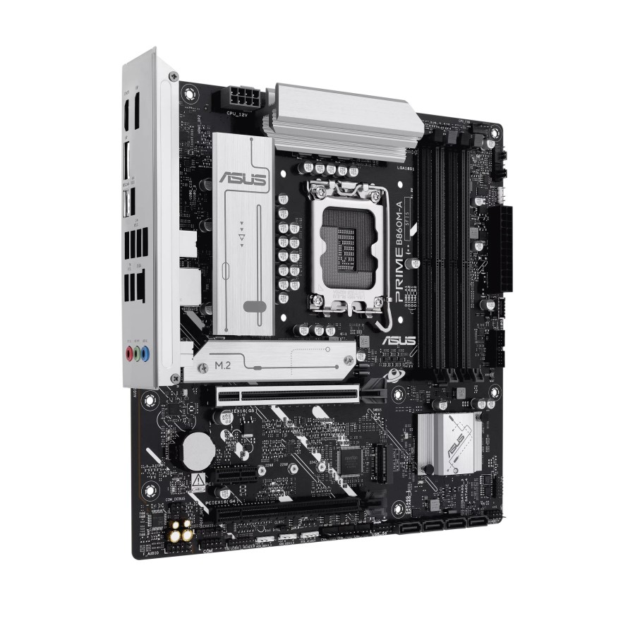 ASUS PRIME B860M-A-CSM побудована на чипсеті Intel B860 та орієнтована на процесори Intel Core Ultra другого покоління. Чотири слоти DDR5 підтримують до 256 ГБ оперативної пам’яті з високими робочими частотами. Для накопичувачів передбачено два роз’єми M.2, включно з підтримкою PCIe 5.0, а також чотири порти SATA. Плата оснащена сучасними відеовиходами DisplayPort та HDMI для роботи з моніторами високої роздільної здатності. Посилена система живлення та охолодження забезпечує стабільну роботу компонентів.