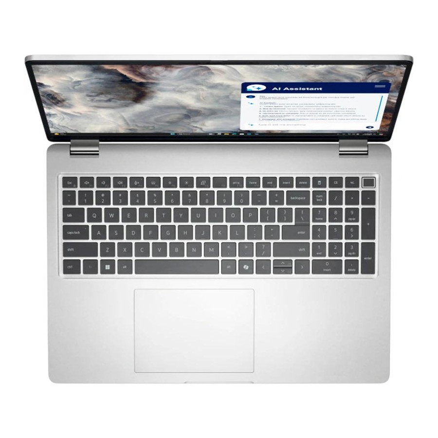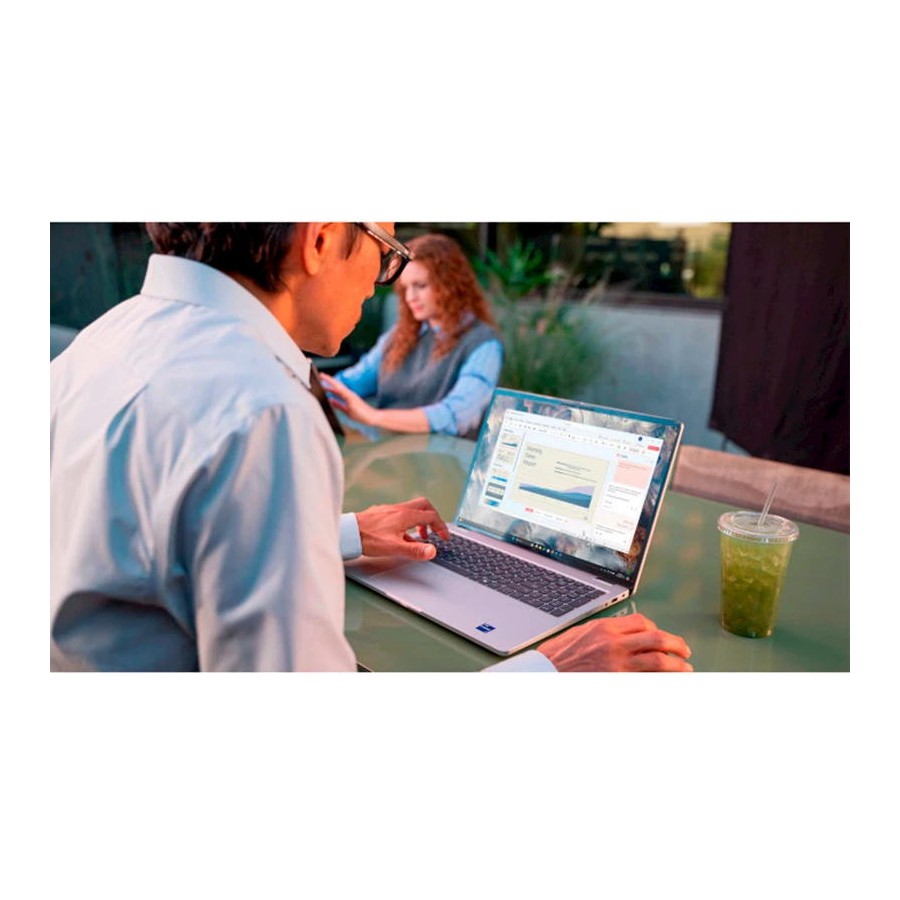 Матовий дисплей FHD+ з яскравістю 300 ніт зменшує відблиски під час тривалої роботи. Камера з HDR, ІЧ-модулем і функцією розпізнавання обличчя підвищує рівень безпеки та комфорту відеозв’язку. Сканер відбитків пальців інтегровано для швидкої автентифікації. Підсвічувана клавіатура з українською розкладкою та цифровим блоком зручна для роботи з числами. Наявність клавіші Copilot спрощує доступ до AI-інструментів Windows. Сучасні розніми Thunderbolt 4 забезпечують швидке передавання даних і під’єднання дисплеїв. Акумулятор на 55 Вт·год із технологією ExpressCharge скорочує час підзаряджання. Корпус Platinum Silver поєднує міцність і діловий стиль.