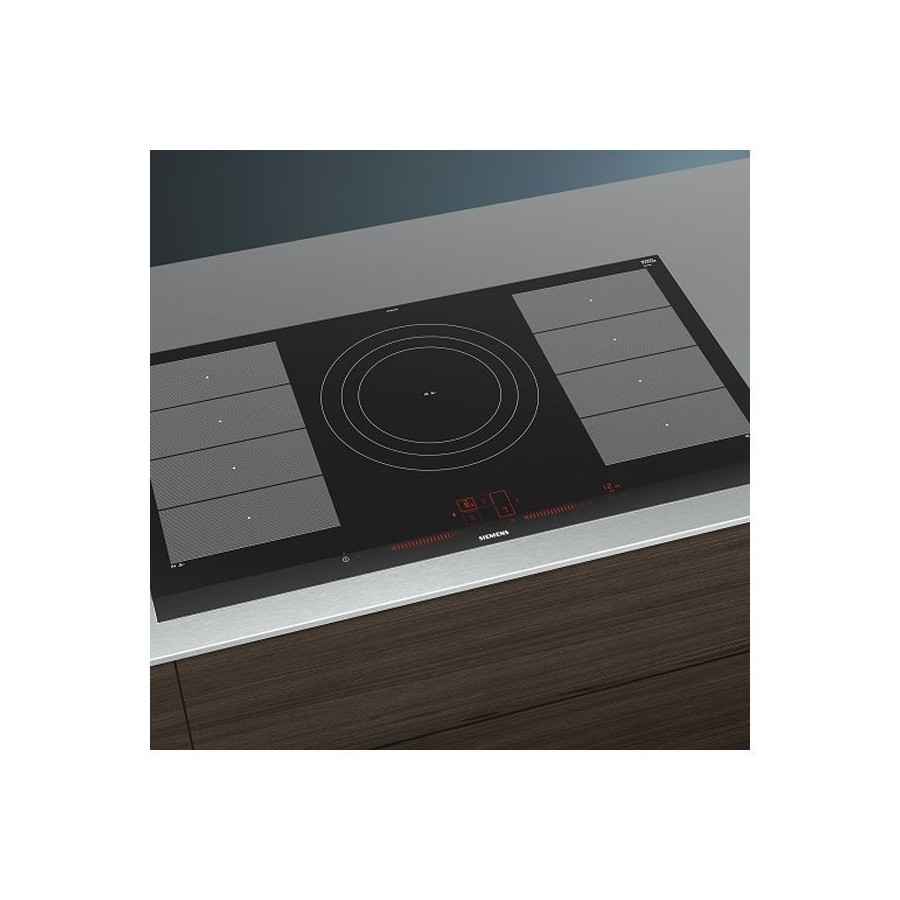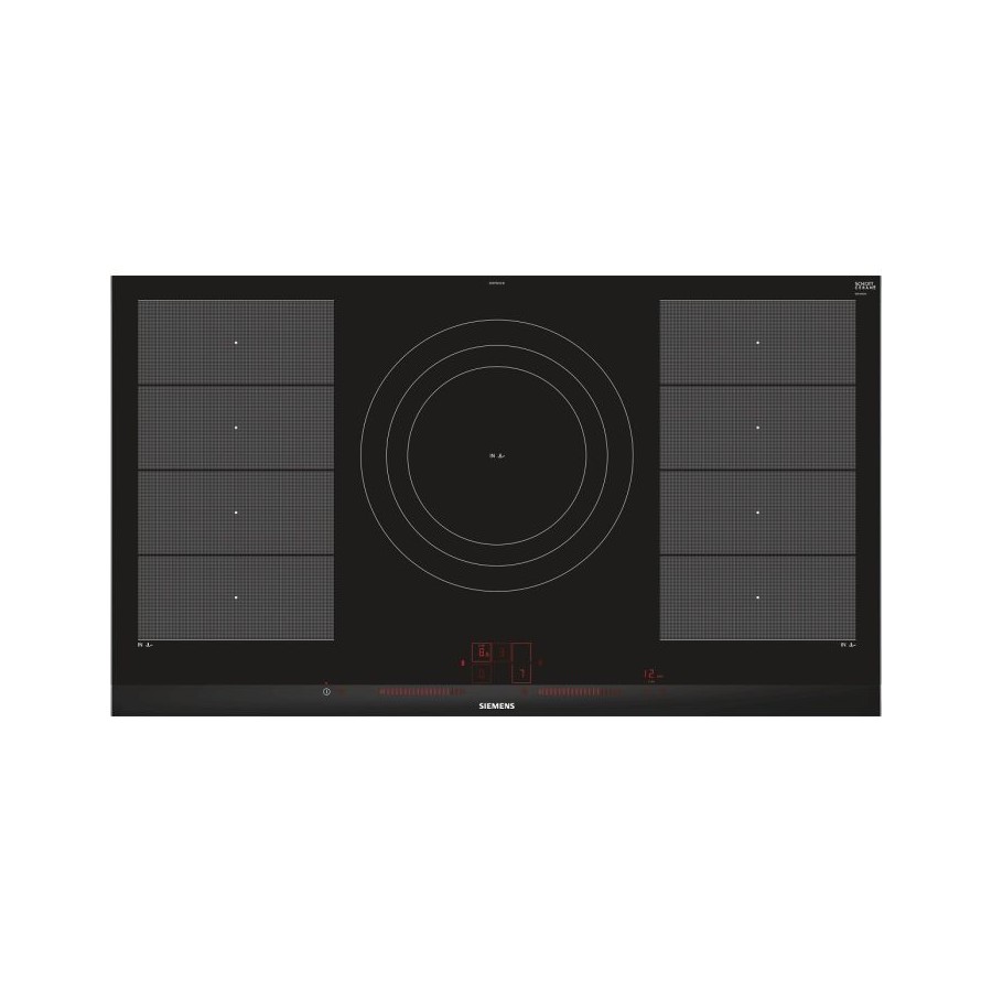 Варильна поверхня Siemens EX975LVC1E — індукційна модель шириною 90 см, розрахована на інтенсивне використання та гнучку організацію робочого простору. П’ять конфорок, включно з багатоконтурними зонами varioInduction, підтримують адаптацію під посуд різних розмірів і форм. Склокераміка highSpeed сприяє швидкому нагріванню та стабільному контролю температури.