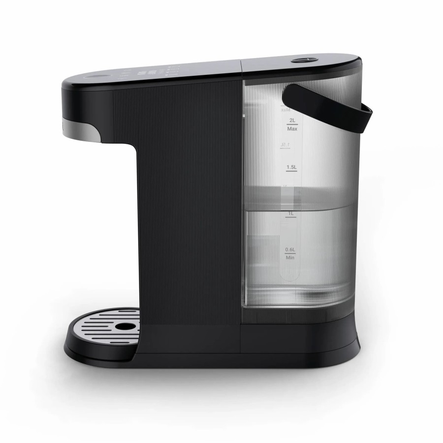 Пристрій оснащений резервуаром для води об’ємом 2 л з індикатором рівня. Сенсорна панель керування дозволяє обрати температуру та об’єм подачі води. Передбачено 6 температурних режимів у діапазоні від 70 до 95 °C для різних напоїв.