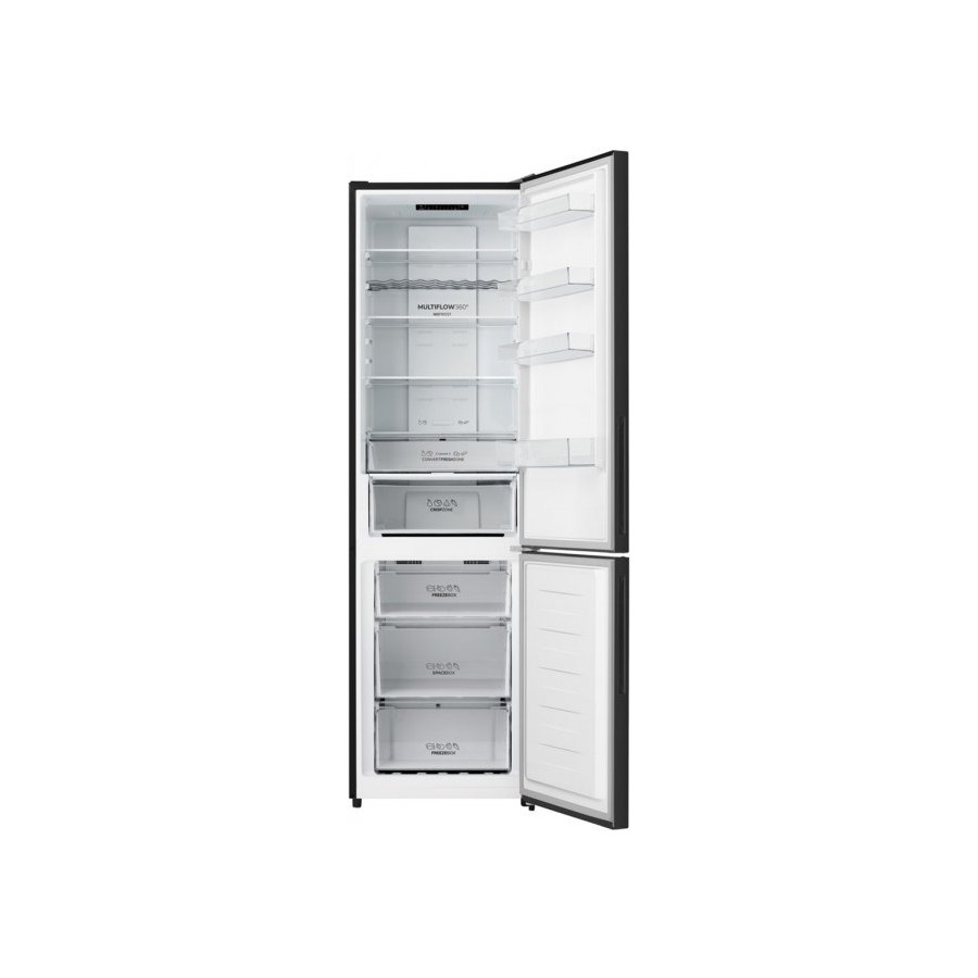 Холодильник Gorenje NRK620EABK4 із нижнім розташуванням морозильної камери створений для стабільного зберігання продуктів у побутових умовах. Система NoFrost+ підтримує сухе середовище без утворення льоду, а MultiFlow забезпечує рівномірний розподіл холодного повітря в холодильному відділенні. Зона Convert FreshZone дає змогу адаптувати простір під різні типи продуктів. Зовнішній LED-дисплей спрощує контроль налаштувань, а діодне освітлення покращує огляд полиць. Корпус у чорному кольорі пасуватиме до сучасних кухонних інтер’єрів.
